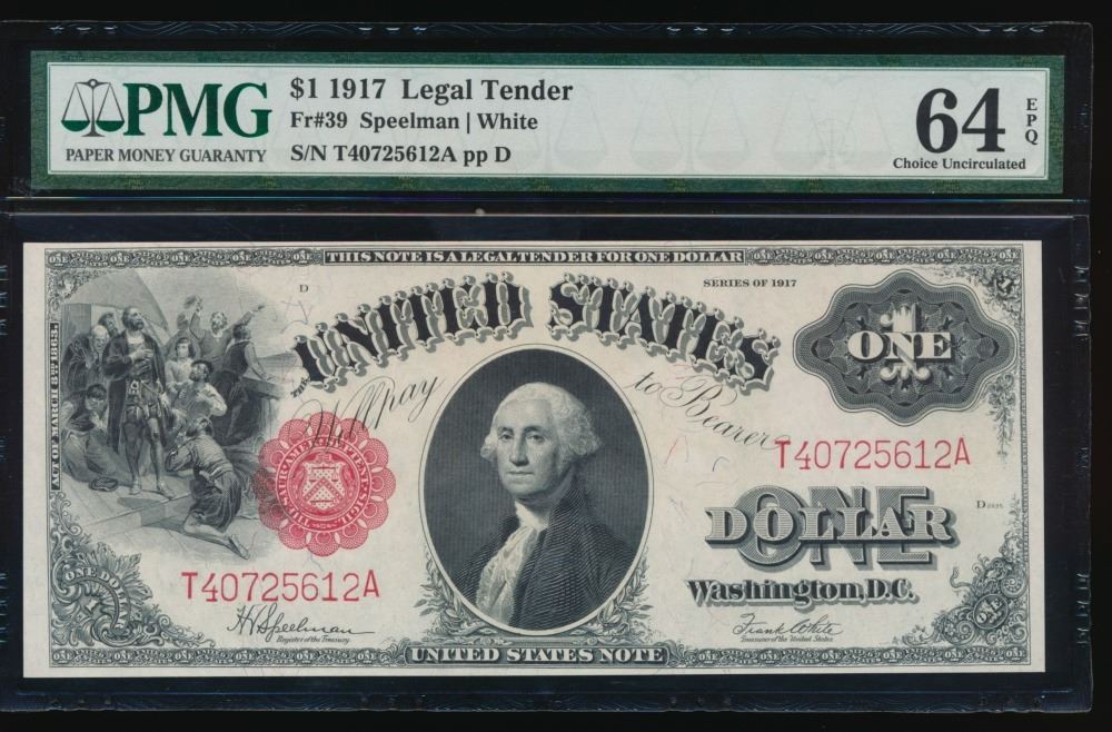 One 1917 $1 Legal Tender Note PMG 64EPQ.