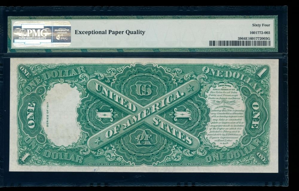 One 1917 $1 Legal Tender Note PMG 64EPQ.