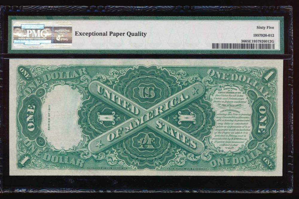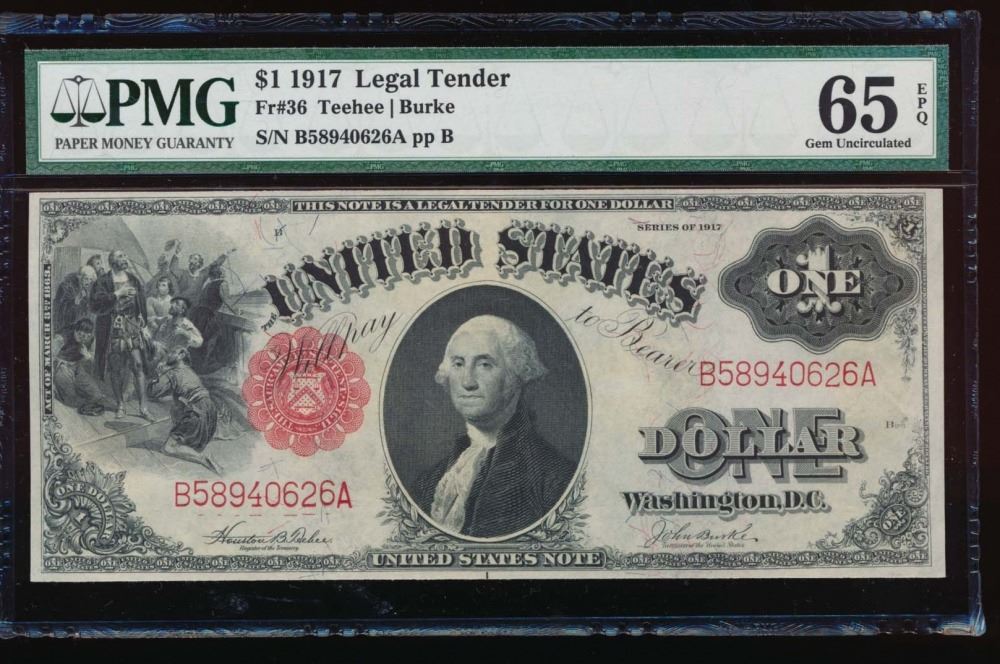 One 1917 $1 Legal Tender Note PMG 65EPQ.