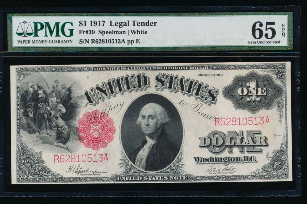 One 1917 $1 Legal Tender Note PMG 65EPQ.
