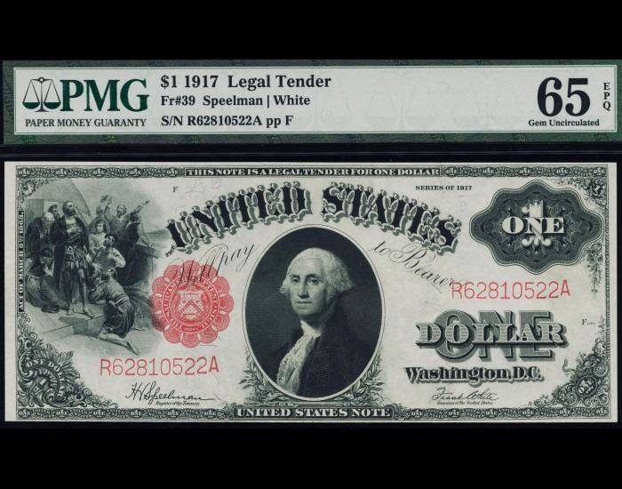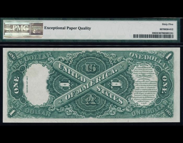 One 1917 $1 Legal Tender Note PMG 65EPQ.