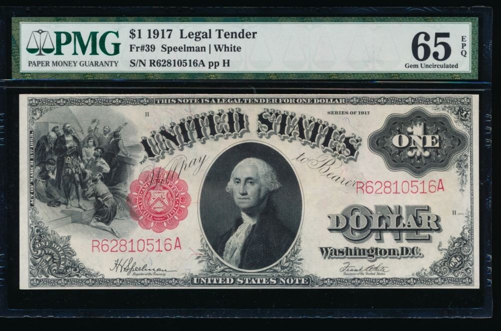 One 1917 $1 Legal Tender Note PMG 65EPQ.
