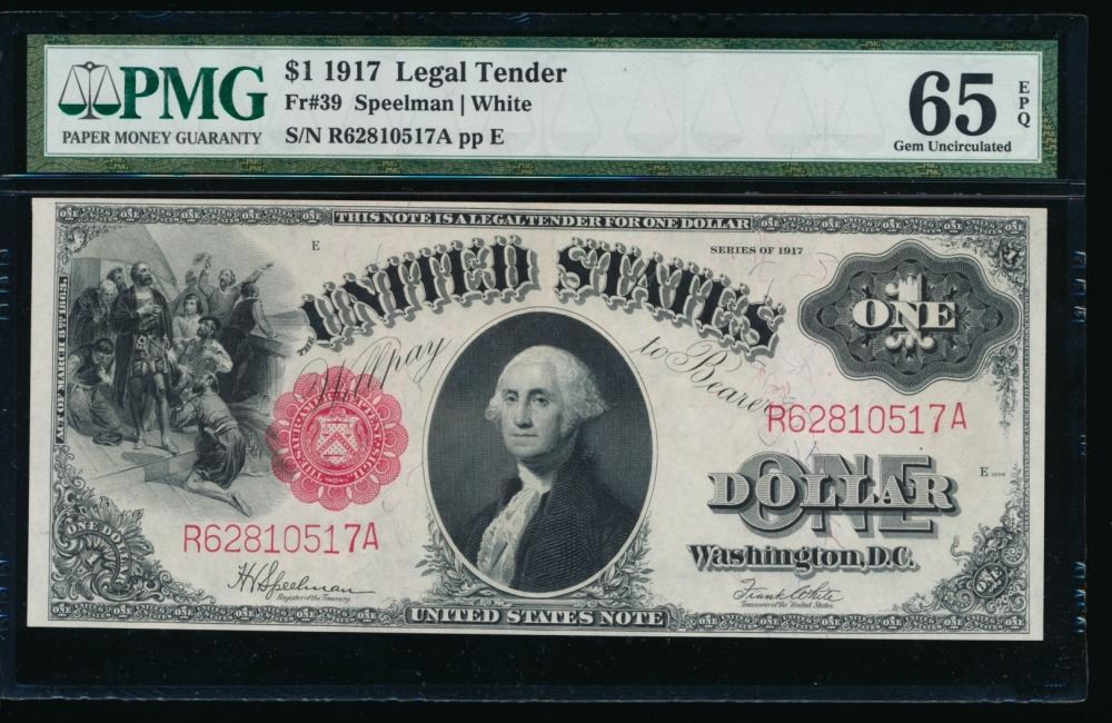 One 1917 $1 Legal Tender Note PMG 65EPQ.