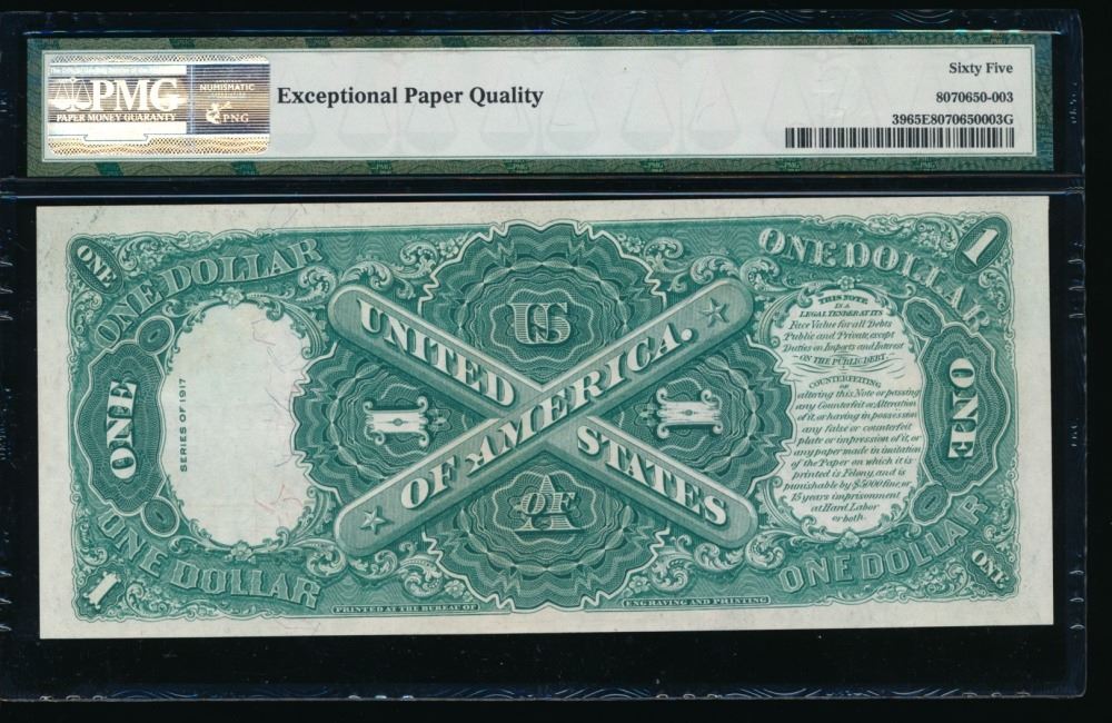 One 1917 $1 Legal Tender Note PMG 65EPQ.