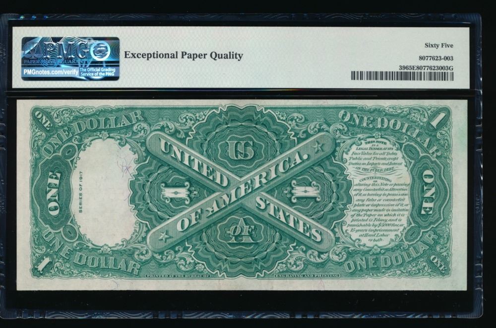 One 1917 $1 Legal Tender Note PMG 65EPQ.