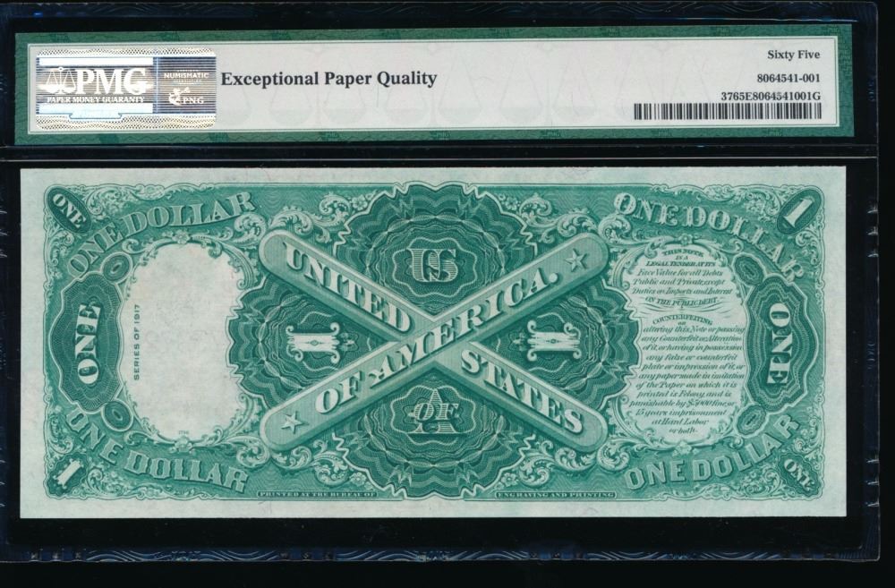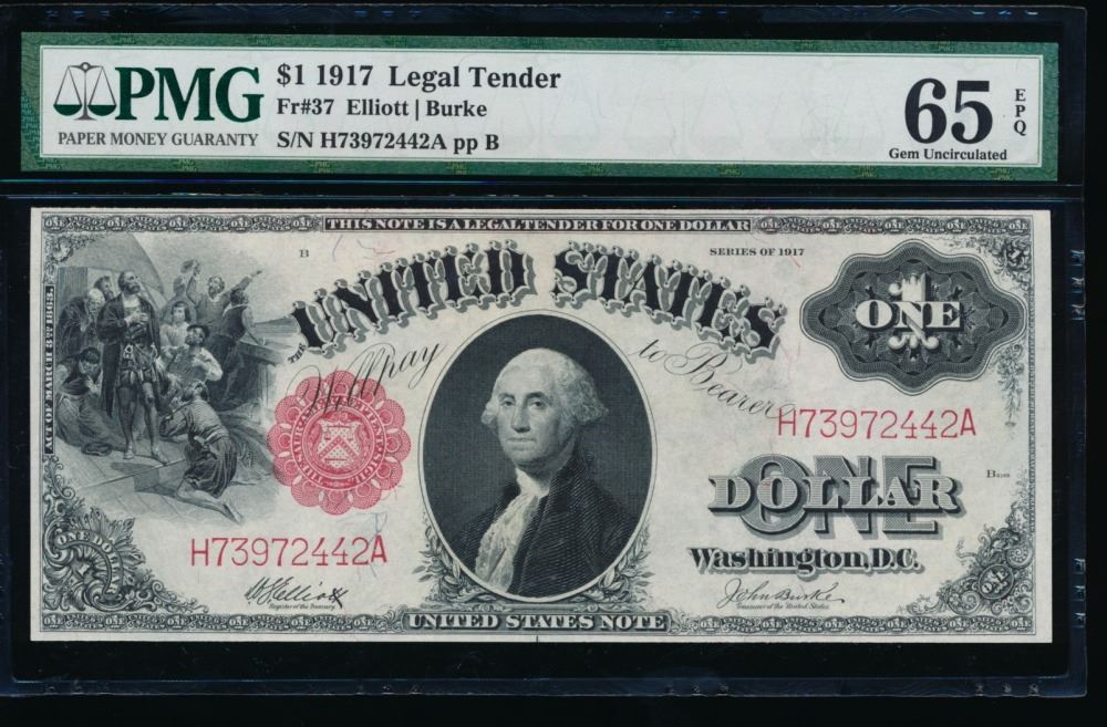 One 1917 $1 Legal Tender Note PMG 65EPQ.
