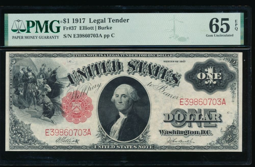 One 1917 $1 Legal Tender Note PMG 65EPQ.