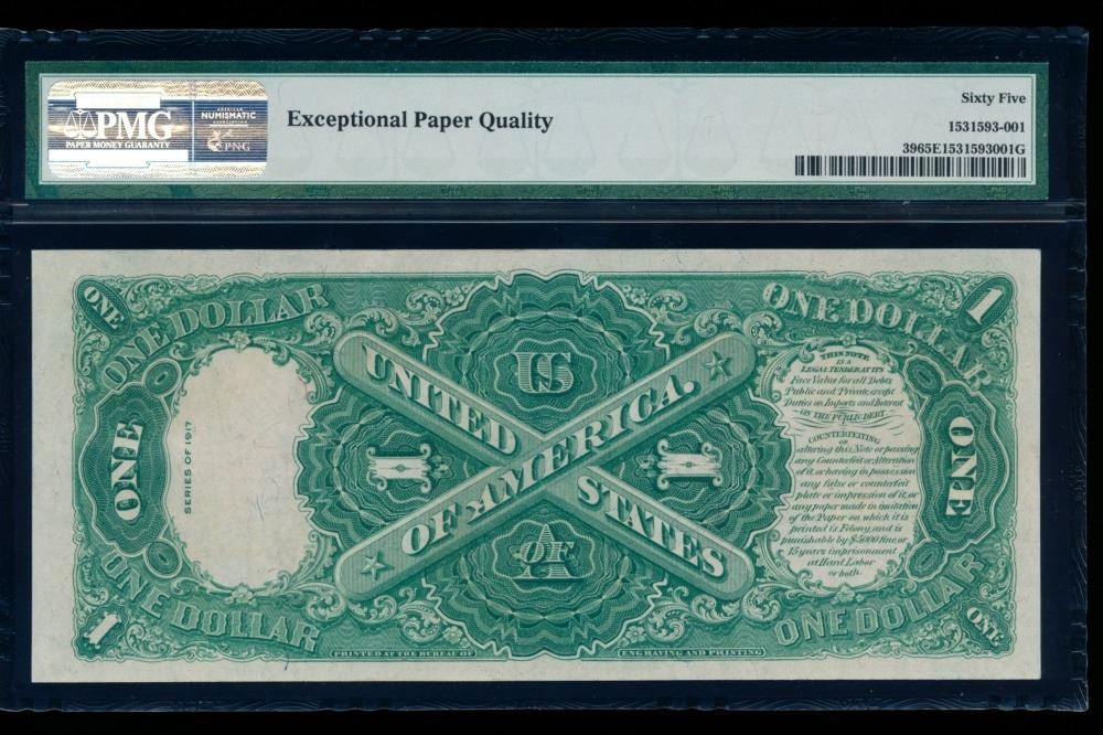 One 1917 $1 Legal Tender Note PMG 65EPQ.