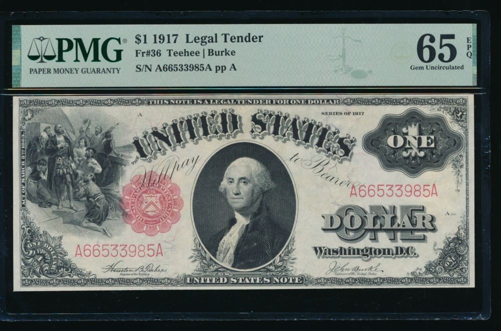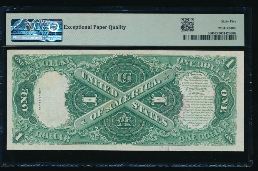 One 1917 $1 Legal Tender Note PMG 65EPQ.