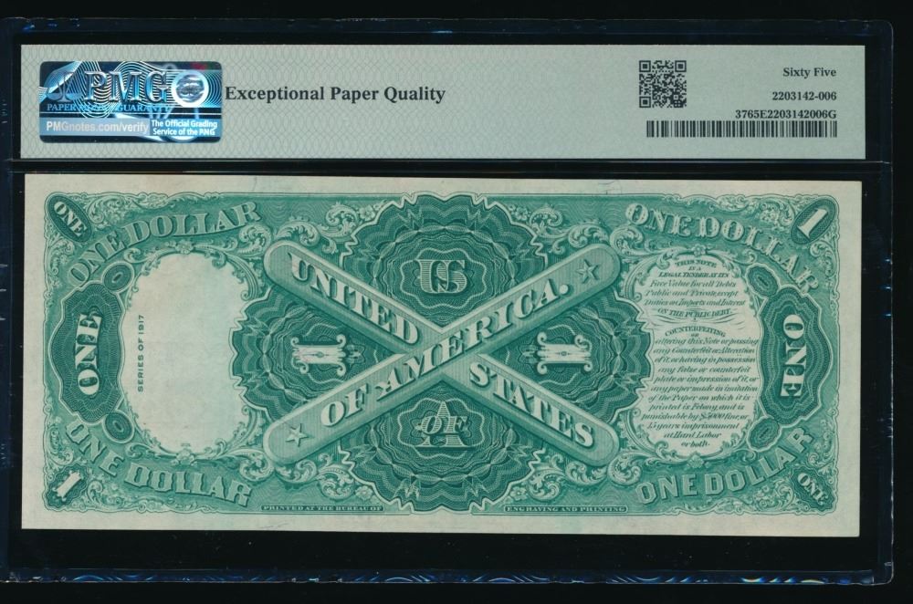 One 1917 $1 Legal Tender Note PMG 65EPQ.