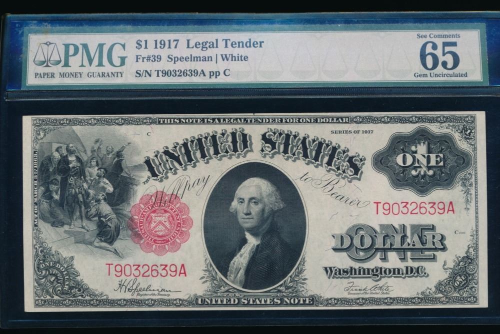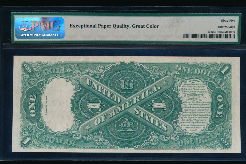 One 1917 $1 Legal Tender Note PMG 65.