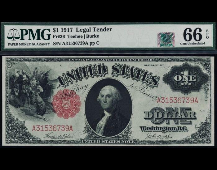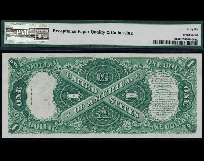 One 1917 $1 Legal Tender Note PMG 66EPQ.