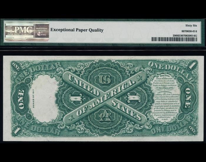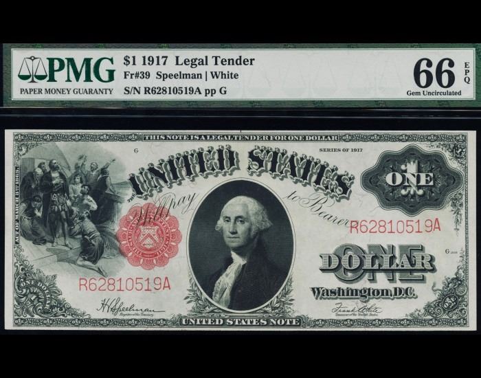 One 1917 $1 Legal Tender Note PMG 66EPQ.