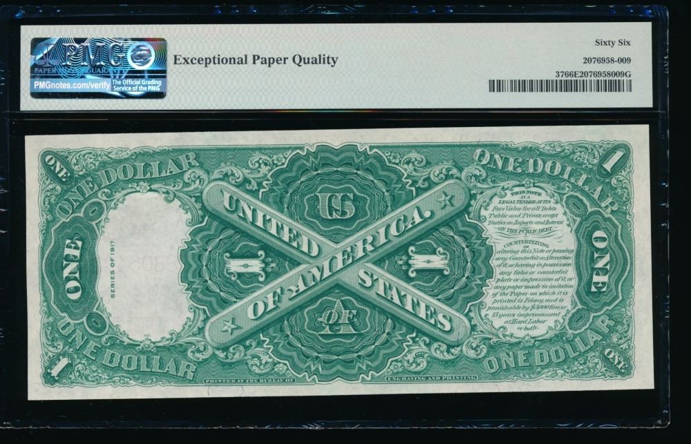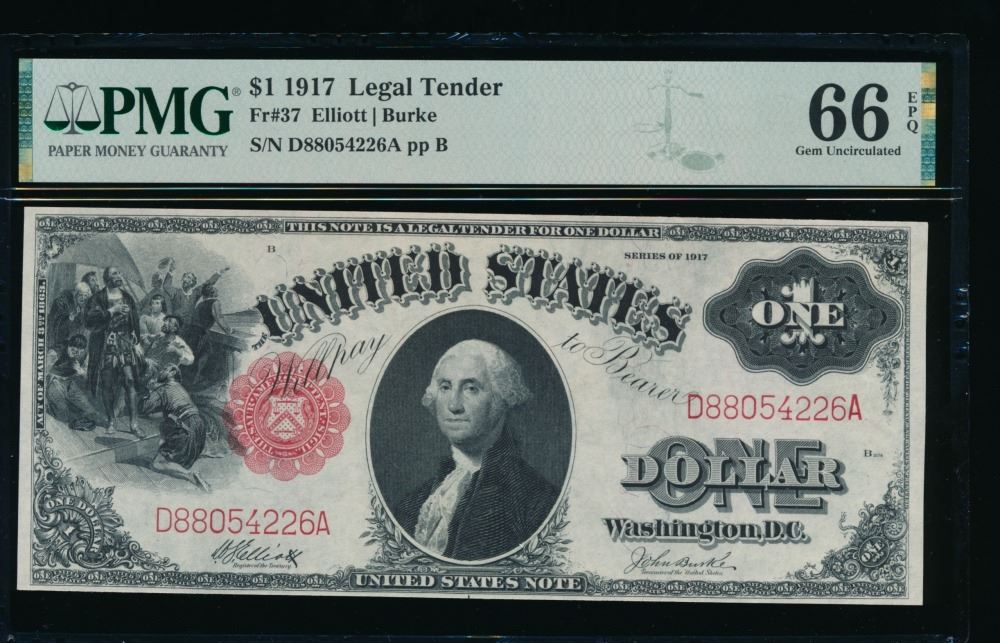 One 1917 $1 Legal Tender Note PMG 66EPQ.