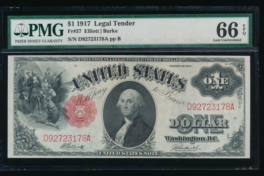 One 1917 $1 Legal Tender Note PMG 66EPQ.
