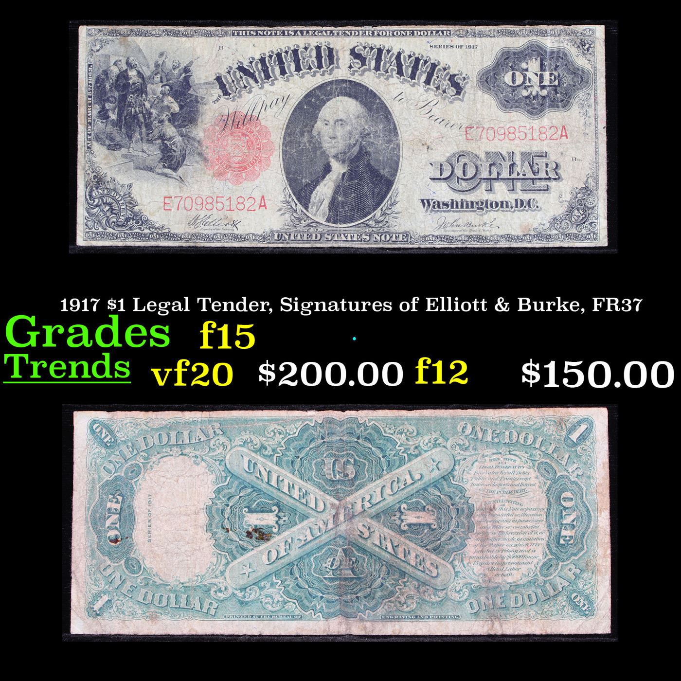 1917 $1 Legal Tender, Signatures of Elliott & Burke, FR37 Grades f+