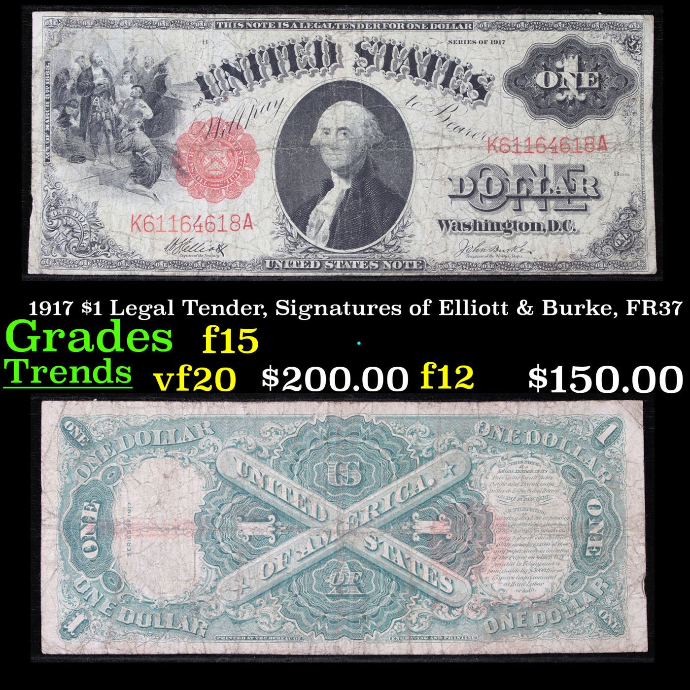 1917 $1 Legal Tender, Signatures of Elliott & Burke, FR37 Grades f+
