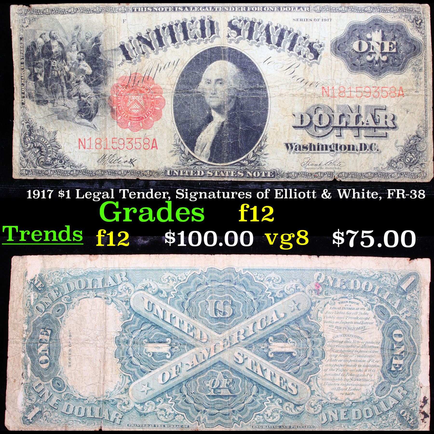 1917 $1 Legal Tender, Signatures of Elliott & White, FR-38 Grades f, fine