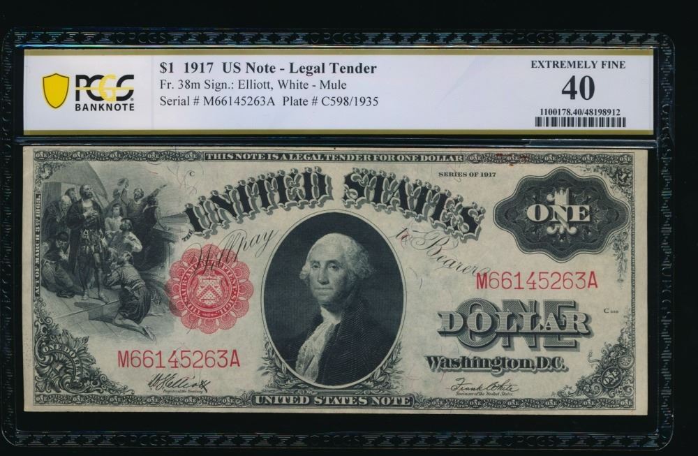 One 1917 $1 Mule Legal Tender Note PCGS 40.