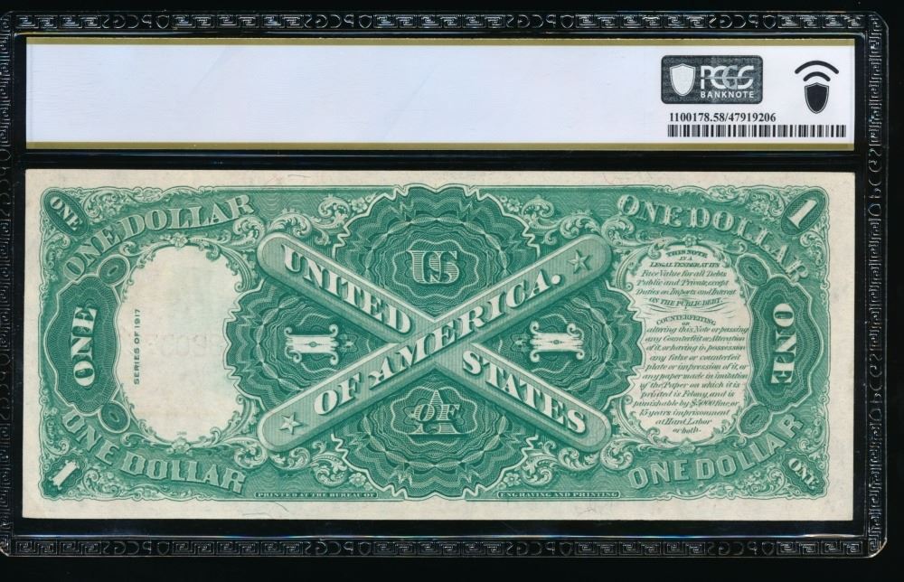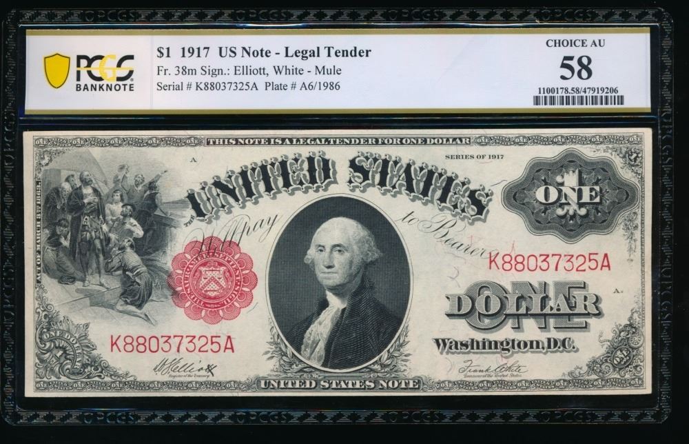 One 1917 $1 Mule Legal Tender Note PCGS 58.