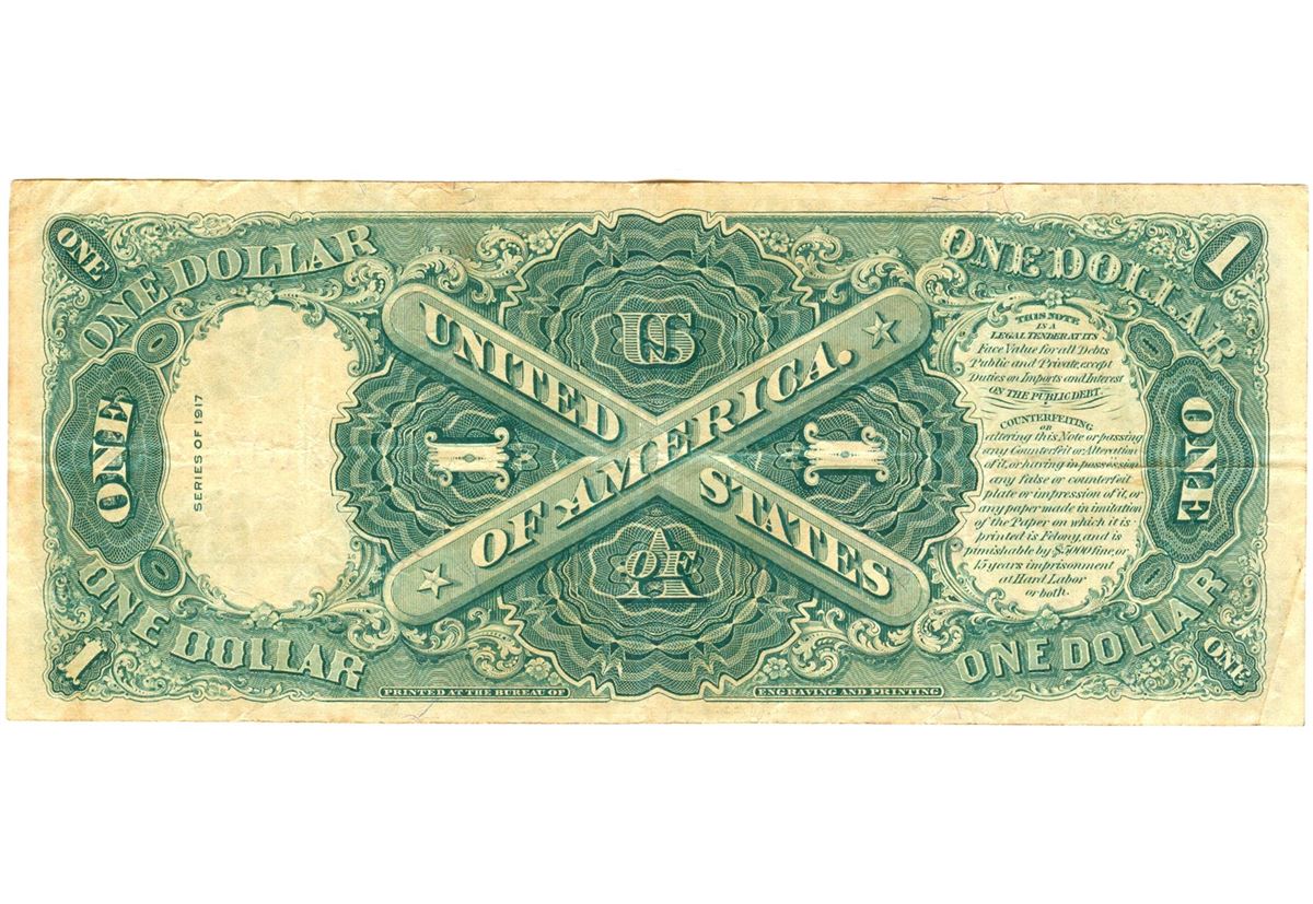 One 1917 $1 Saw-Horse Legal Tender Bank Note.