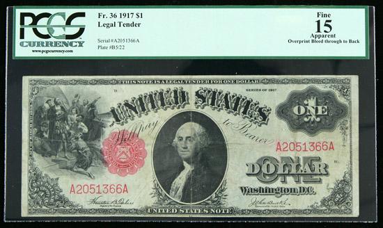 1917, $1 United States Note. PCGS Fine 15 Apparent