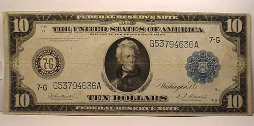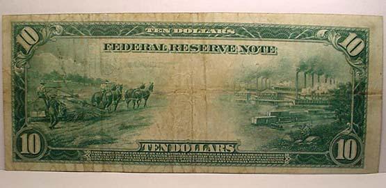 1917 10 DOLLAR FEDERAL RESERVE NOTE - LARGE