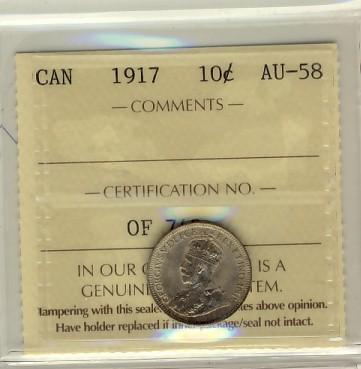 1917 10¢ ICCS AU58