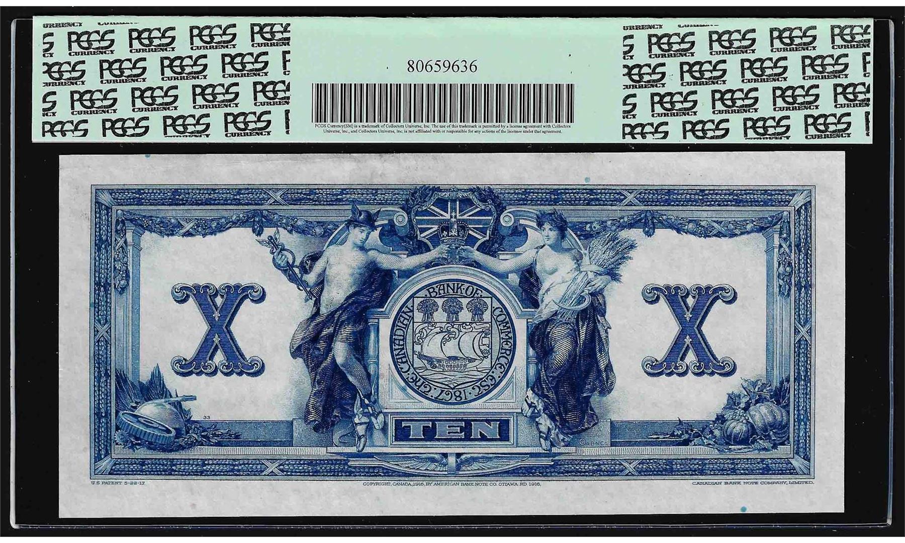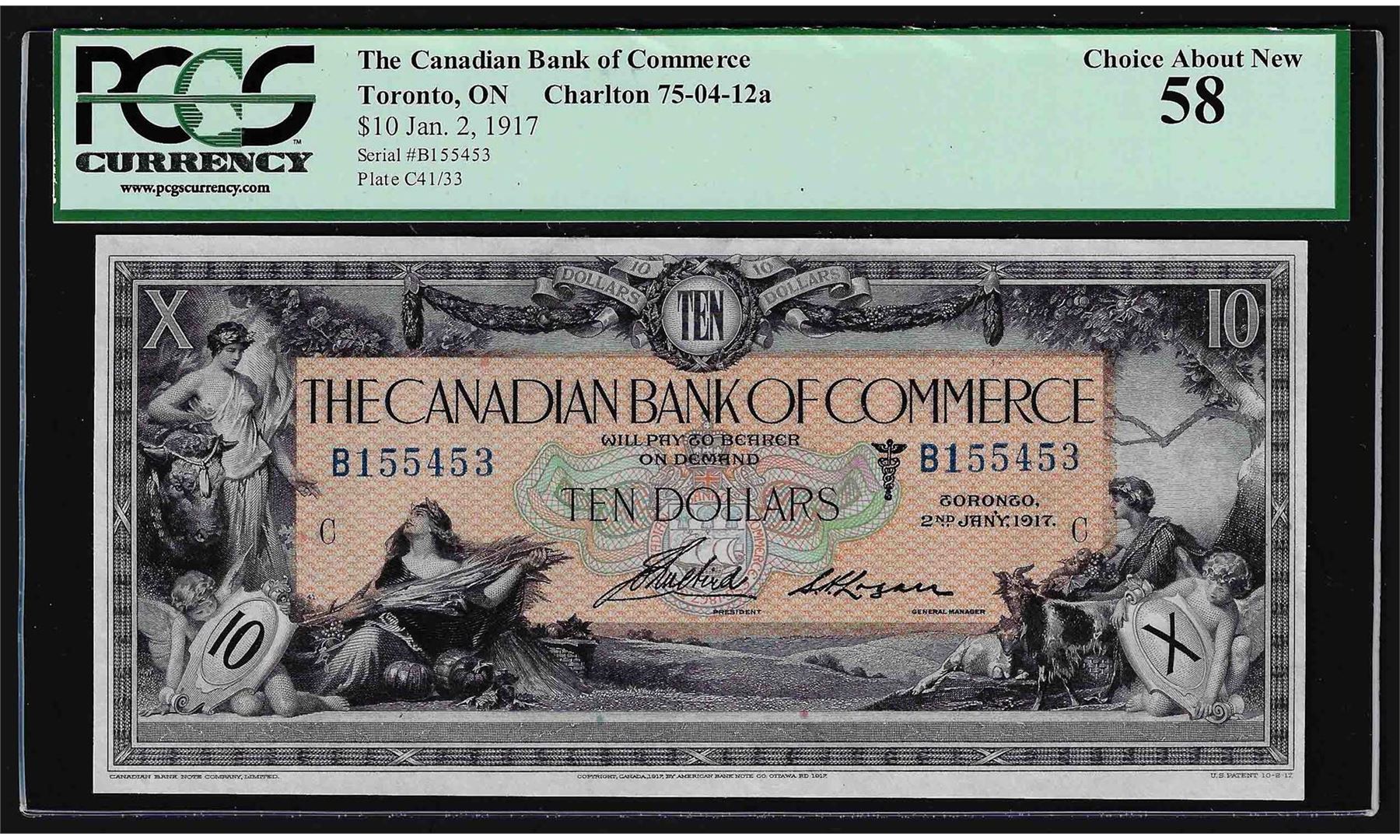One 1917 $10 The Canadian Bank of Commerce Note PCGS Choice About New 58. PCGS Graded.