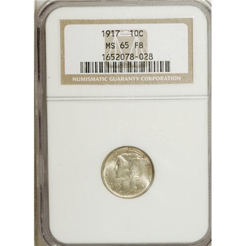 <B>1917 10C MS65 Full Bands NGC.</B></I> NGC Census: (182/84). PCGS Population (159/83). Mintage: 55,230,000. Numismedia Wsl. Price for NGC/PCGS coin in MS65: $380. (#4911)<BR><BR><b>Shipping:</b> Coins & Currency (<a target="_blank" href="http://www.heritageauctions.com/common/shipping.php">view shipping information</a>)