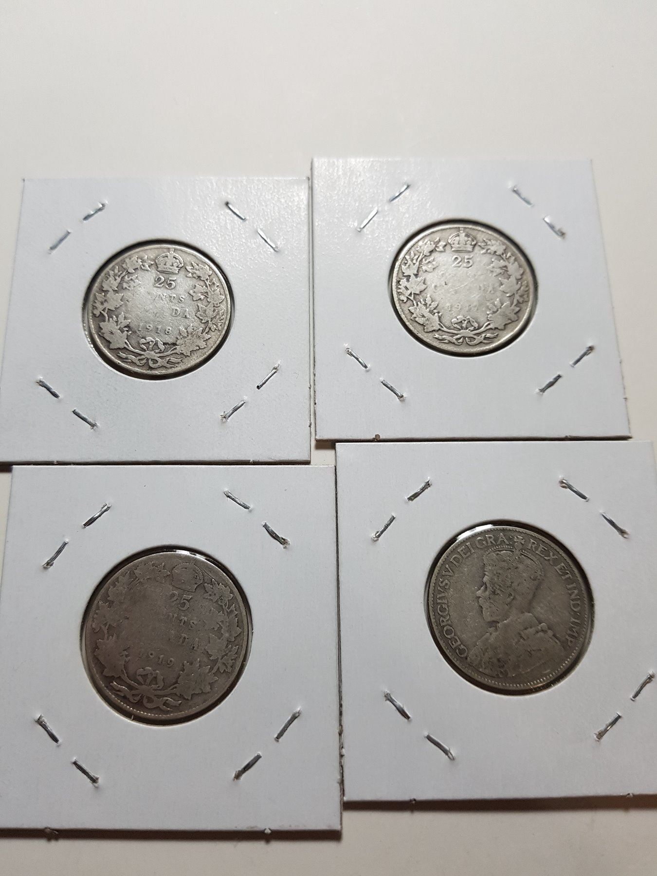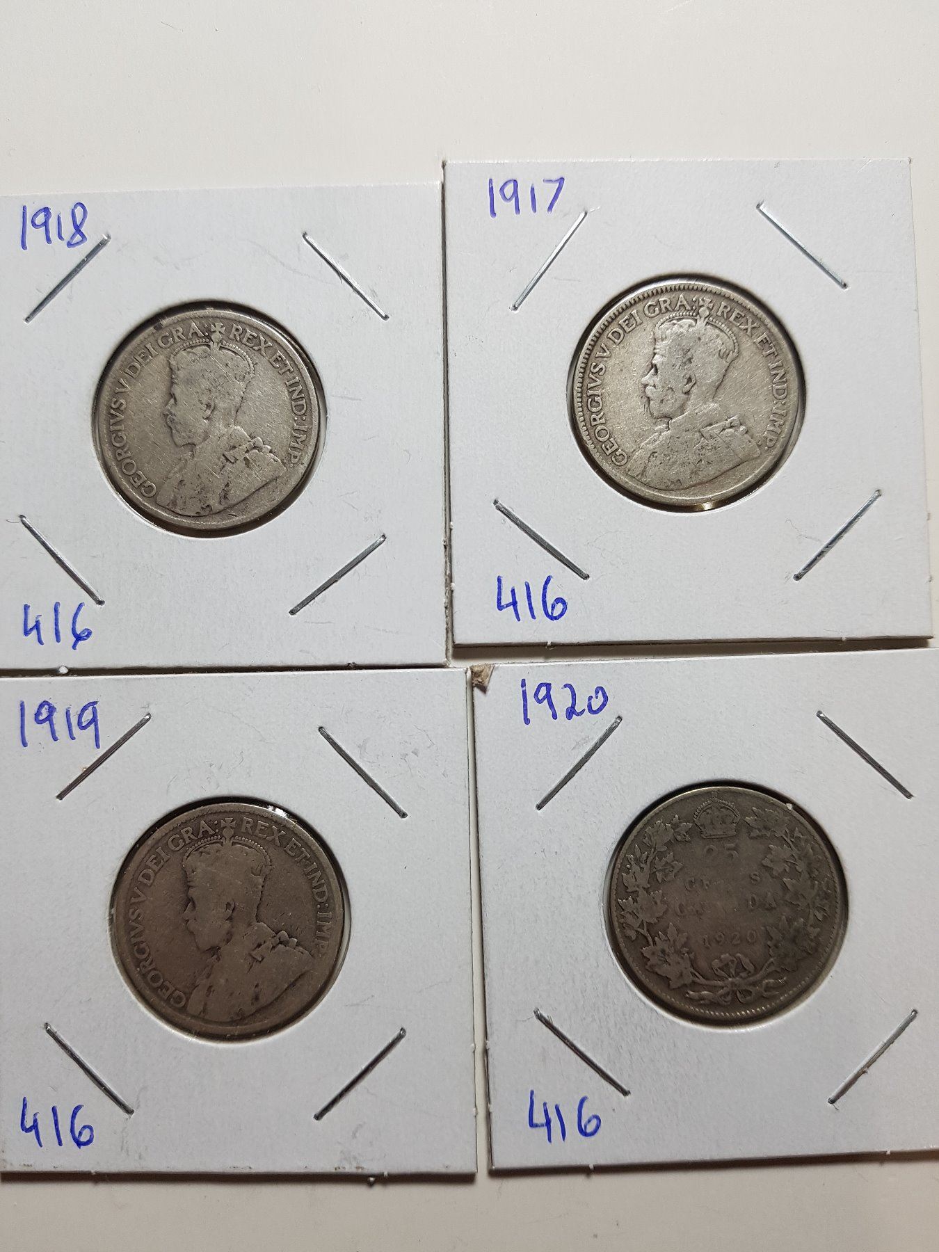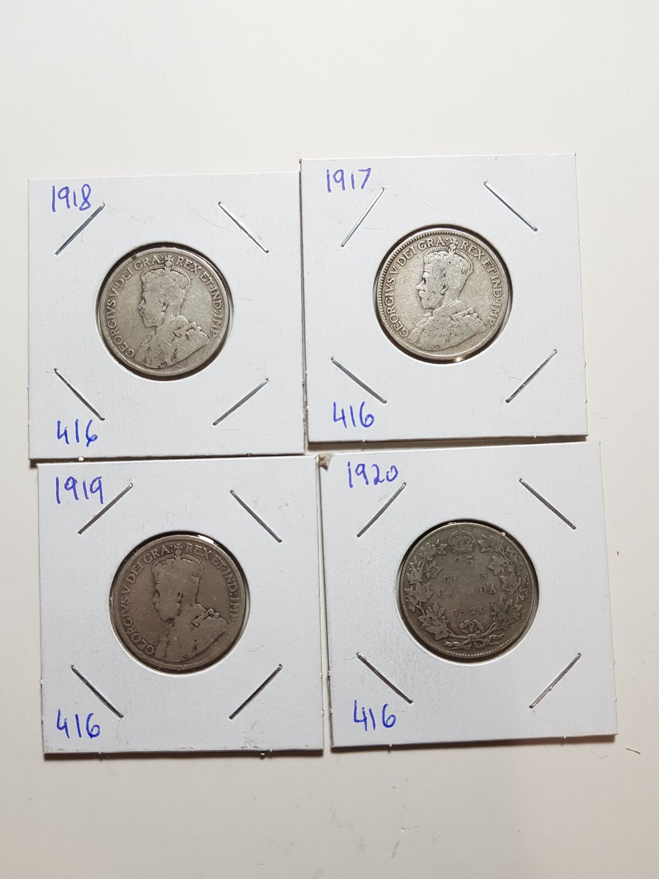 1917, 18, 19, 20 SILVER TWENTY FIVE CENT COINS