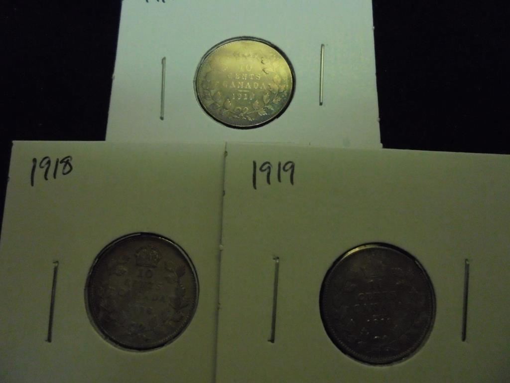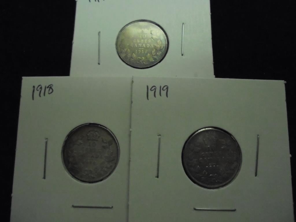 1917,18 & 19 CANADA SILVER 10 CENTS