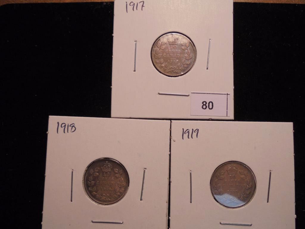 1917,18 & 1919 CANADA SILVER 10 CENTS