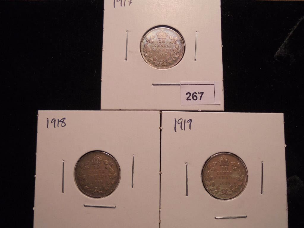 1917,18 & 1919 CANADA SILVER 10 CENTS