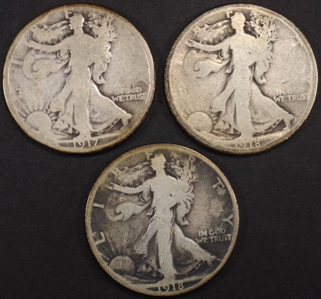 1917, 1918, 1918-S WALKING LIBERTY HALF DOLLARS