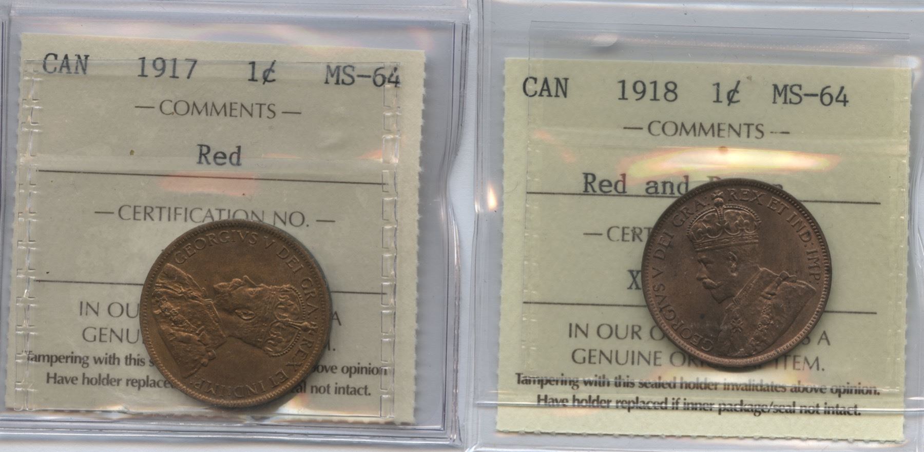 ICCS MS-64. Red. ICCS MS-64, Red & Brown. respectively. 2 pcs