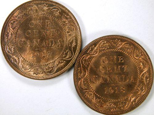 1917 and 1918, both Choice Red and Brown Uncirculated and both over 50% red