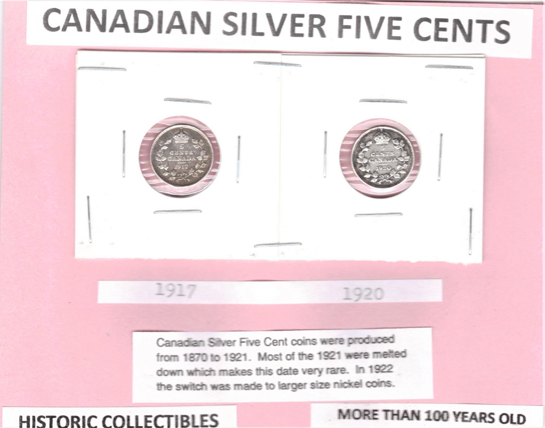 1917 & 1920 Canadian Silver Five Cents