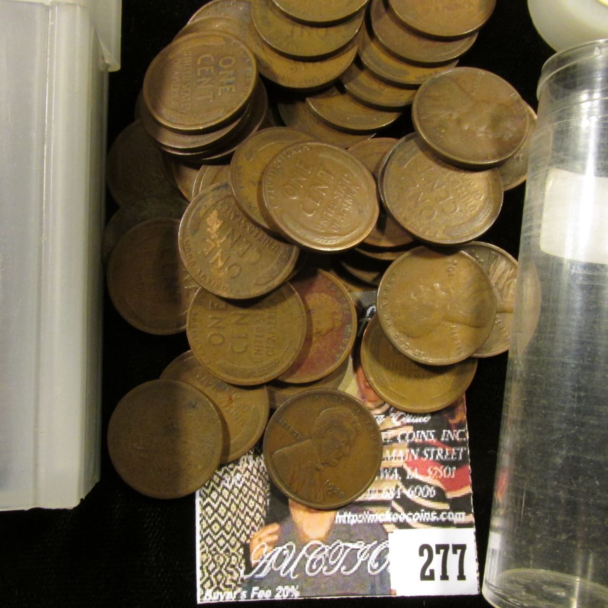 1917 & 1920 Solid Date Rolls of U.S. Lincoln Cents in a pair of plastic tubes.