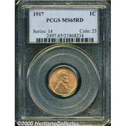 <B>1917 1C MS65 Red PCGS.</B></I> Lustrous orange surfaces reveal tiny pepper-like spots over the reverse. The motifs are nicely impressed.
