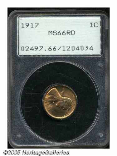 <B>1917<1C> MS66 Red PCGS.</B></I> Lustrous red surfaces and excellent eye appeal. This example is housed in an older green label holder.