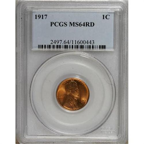 <B>1917 1C MS64 Red PCGS.</B></I> PCGS Population (218/361). NGC Census: (78/78). Mintage: 196,429,792. Numismedia Wsl. Price for NGC/PCGS coin in MS64: $39. (#2497)<BR><BR><B>Coin Engraver:</B> Victor D. Brenner<BR><BR><b>Shipping:</b> Coins & Currency (<a target="_blank" href="http://www.heritageauctions.com/common/shipping.php">view shipping information</a>\)
