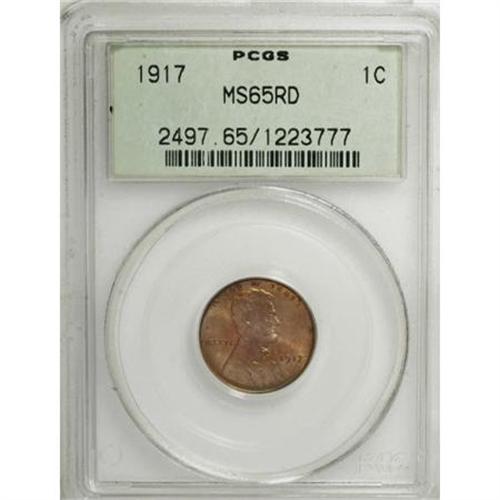 <B>1917 1C MS65 Red PCGS.</B></I> . PCGS Population (222/144). NGC Census: (55/26). Mintage: 196,429,792. Numismedia Wsl. Price for NGC/PCGS coin in MS65: $140. (#2497)<BR><BR><B>Coin Engraver:</B> Victor D. Brenner<BR><BR><b>Shipping:</b> Coins & Currency (<a target="_blank" href="http://www.heritageauctions.com/common/shipping.php">view shipping information</a>)