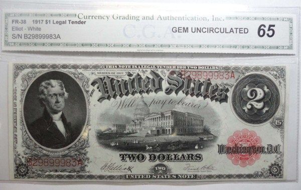 CGA CERT HAS A TYPO. IT IS A $2 NOT $1 AS SEEN IN PICTURES
