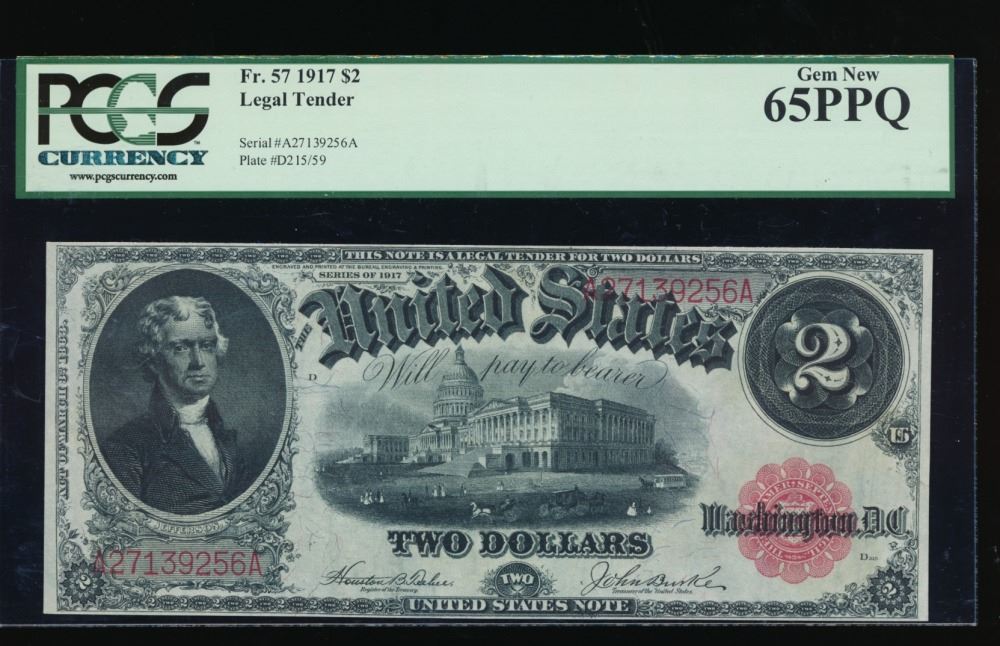 One 1917 $2 Large Legal Tender Note PCGS 65PPQ.