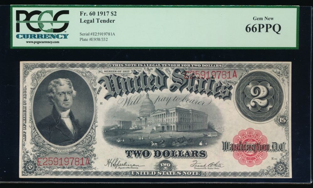 One 1917 $2 Large Legal Tender Note PCGS 66PPQ.