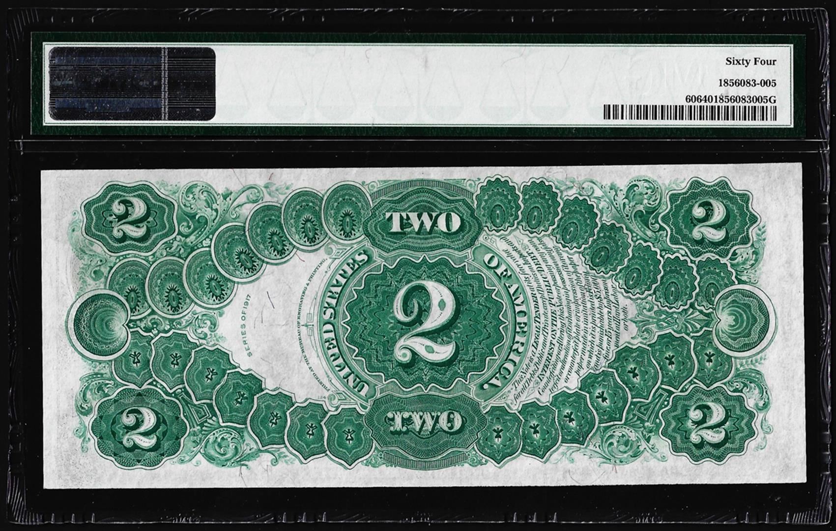 One 1917 $2 Legal Tender Note Fr.60 PMG Choice Uncirculated 64. PMG Certified.