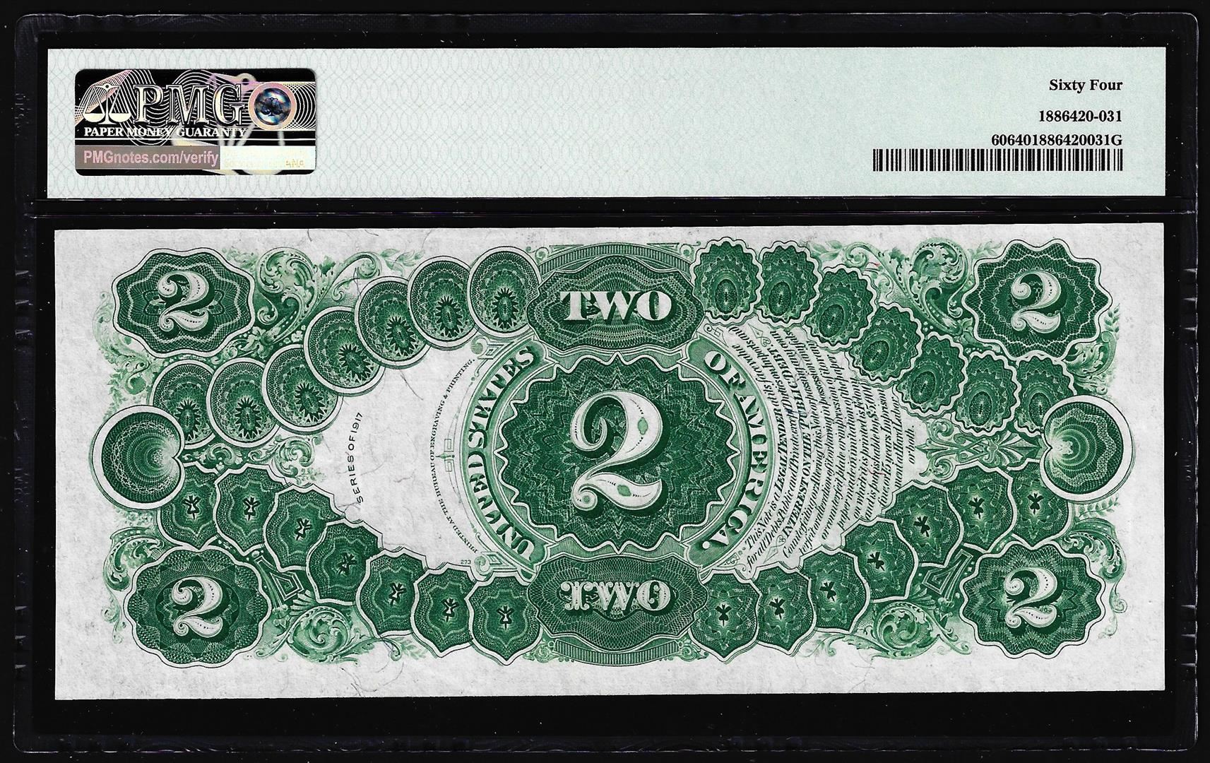 One 1917 $2 Legal Tender Note Fr.60 PMG Choice Uncirculated 64. PMG Certified.