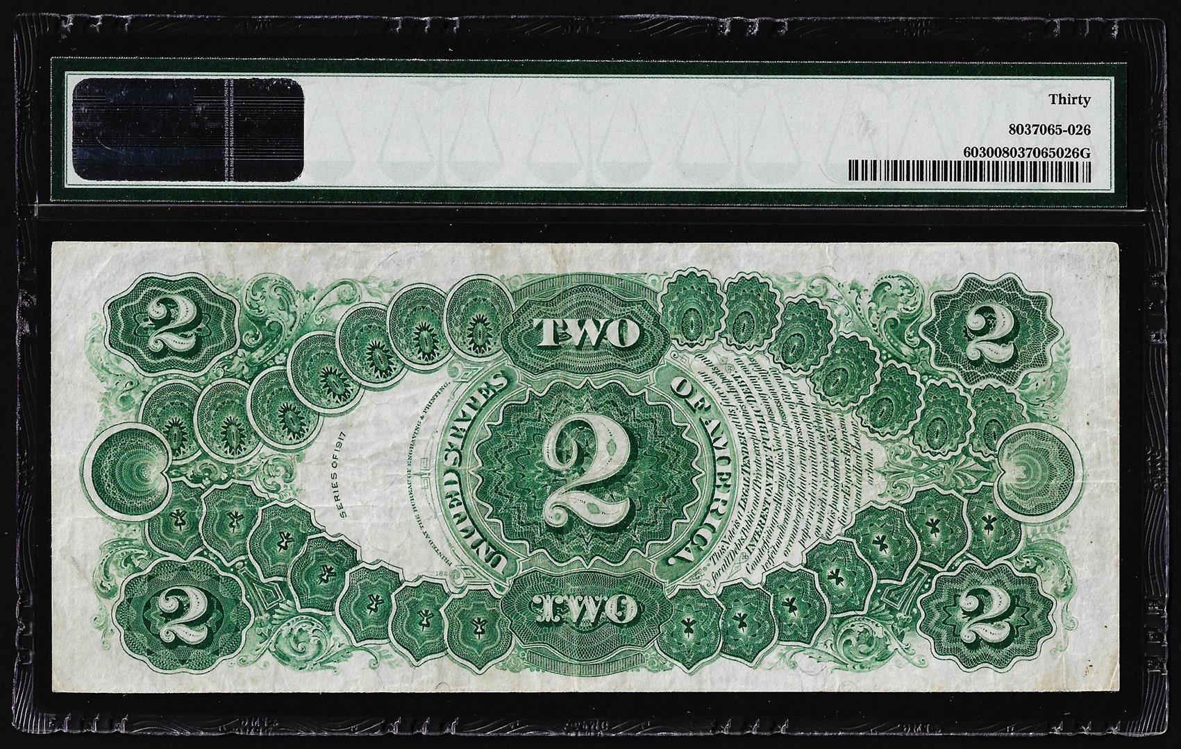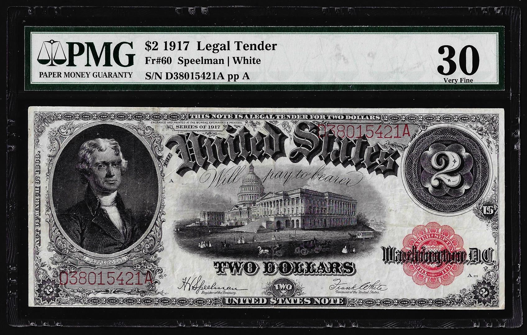One 1917 $2 Legal Tender Note Fr.60 PMG Very Fine 30. PMG Certified.