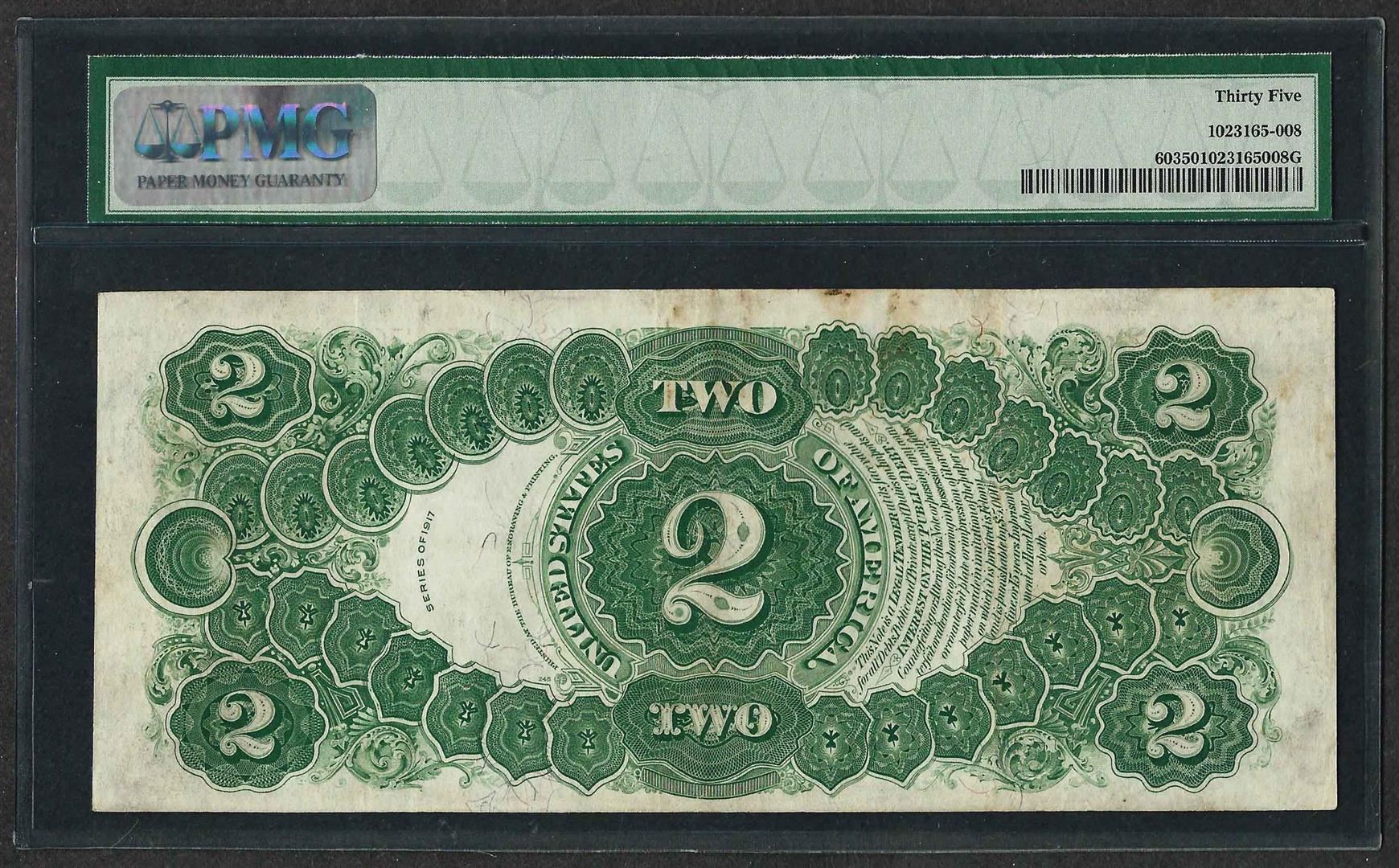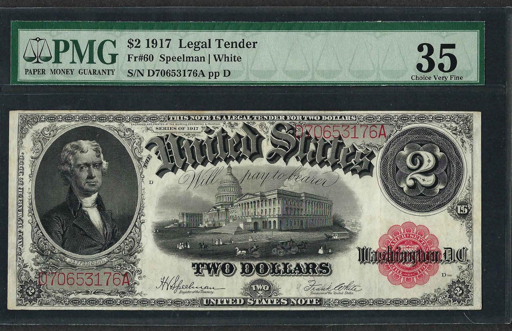 One 1917 $2 Legal Tender Note Fr.60 PMG Very Fine 35. PMG Certified.